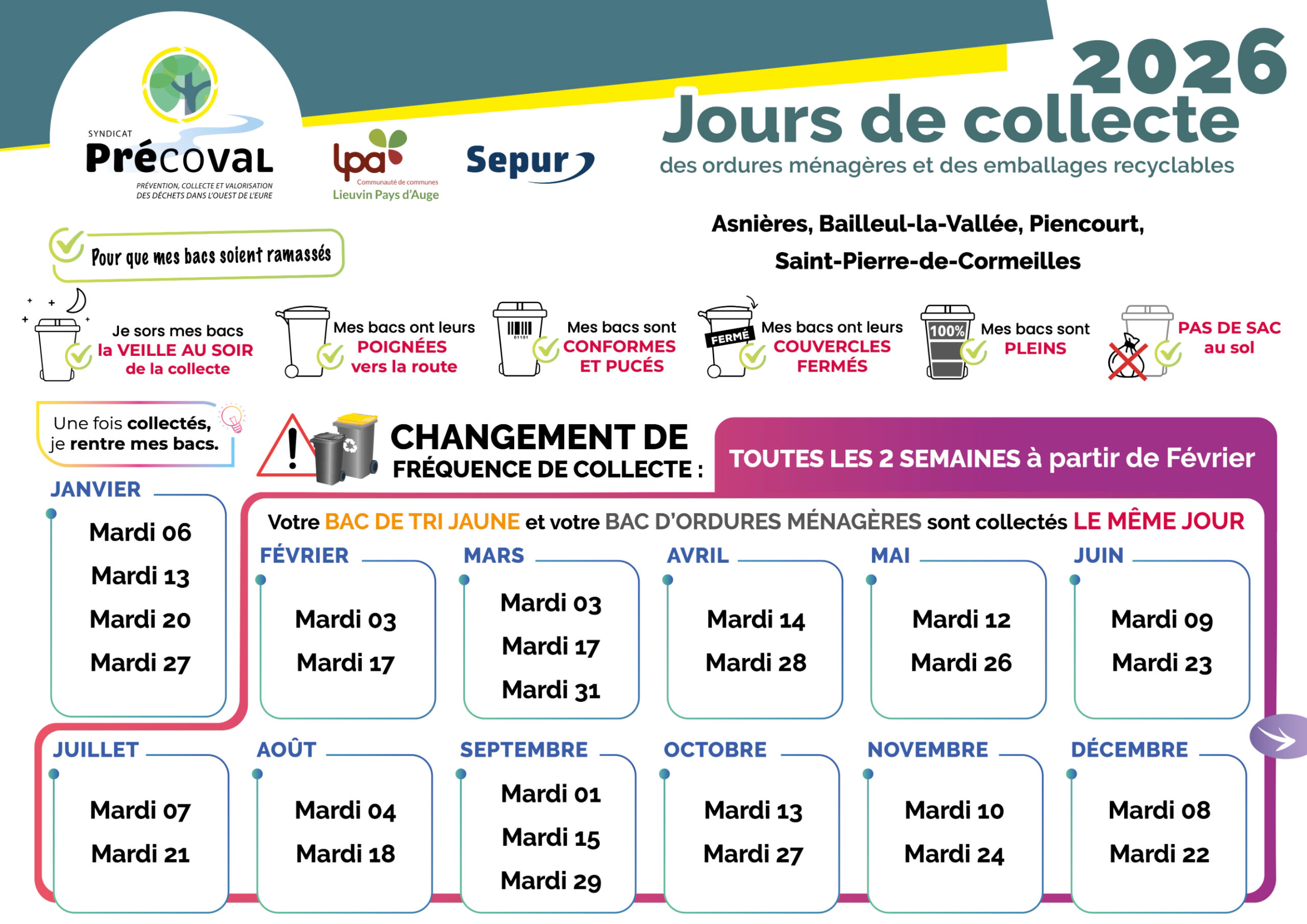 Le calendrier des jours de collectes pour l’année 2026 :